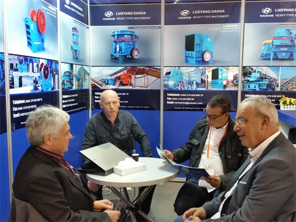 在這次為期6天的展會上,參觀的專業人士絡繹不絕,我們共發放產品資料200余套,展會上我公司共接待來訪客戶200余人,在展會宣傳和交流中客戶對我們推出的具有法國基因的C系列顎式破碎機和BP系列反擊式破碎機尤其感興趣,其它給料機、圓錐式破碎機、制砂機等也有較多關注,另因參加此次展會的客商大多數來自于法國及周邊國家的法語系國家,故我們這次展會也特意邀請我們公司的法國專家路易斯自始至終為我們展會服務,接待來訪很多只講法語的客戶,另外路易斯也邀請了諸多法國的朋友客戶來我們公司的展位參觀交流,通過這次展會,有50多個法國意向客戶,許多客戶都要我們報價,諸多客戶看到洛陽大華和阿特瑞克的合作也很高興,對法國技術+中國洛陽大華制造也很認可。展會還接待了大約15個北非的客戶(突尼斯、阿爾及利亞、摩洛哥和毛利塔利亞)及10多個非洲客戶(多哥、喀麥隆、象牙海岸和塞內加爾)并有詢價,還有一些意大利、塞爾維亞、德國和西班牙客戶等,總之,我們參加這次展會是成功的。