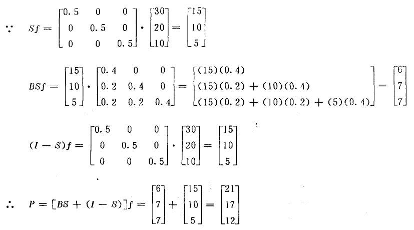 為了研究方便,利用上述表示方法,設粒度分布矢量f={30 20 10},并設實際粉碎中正好有一半粒子受到粉碎,即{15 10 5}受到了粉碎作用。由表1—9可知,該表最下面總計欄內為粉碎前的粒度分布矢量。經過粉碎后,各粒級的顆粒向更小的粒級變移,其變移的比例(百分數)表示在縱列欄內。例如在開始時處于1-a之間的顆粒,經粉碎后在1-a間隔內殘留6,轉移到a-a²間隔的為3,a²-a³間隔的為3,而其余的(3)則轉入比a³更小的間隔。其次,原來處于a²-a³間隔的顆粒經粉碎后在a-a²間隔殘留4,轉移到a²-a³間隔的為2,轉移到比a³更小間隙的為(4)。各粒度相互之間的變化對最初的{15 10 5}的比例可表示如下