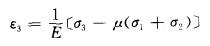 此理論認為,在三個主應力全是拉伸的情況下,以其中最大拉應力(σ3)是否達到某一臨界值來作為判斷物體破壞的依據,而對其余兩個拉應力則不考慮;在拉應 力和壓應力共同作用的情況下,則以最大拉伸應變達到某個限度 作為物體是否發生斷裂的依據,而這個限度可以通過試驗確定。最大拉伸應變ε3為: