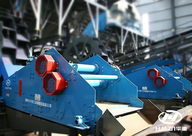 振幅的調整:調整前應先判斷振動篩在工作狀態下,振幅能不能滿足篩分作業要求,如果不能,可以對振幅調整。調整時先關閉電源,卸下激振器上的護罩,再旋轉激振器軸上平衡塊來改變激振器產生的激振力,將平衡塊放在激振器部的相同百分比的位置,然后鎖緊偏心塊,振幅大小的調整完成。另外也可以通過直接調整平衡塊的重量或軸兩端的偏心塊夾角來改變振幅大小。