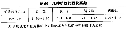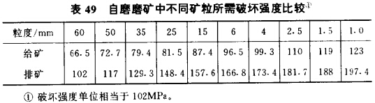 (4)礦石細(xì)磨下存在抗磨性逐漸增強(qiáng)的趨勢(shì)。由于存在選擇 性磨碎現(xiàn)象,力學(xué)性質(zhì)不均勻的礦石在細(xì)磨過程中強(qiáng)度小的被磨細(xì),強(qiáng)度大的則殘留下來。由此引起磨機(jī)排礦中某一粒級(jí)的強(qiáng)度比給礦中同一粒級(jí)的大,即礦石被磨礦后被強(qiáng)化,這種現(xiàn)象從表49及表50列舉的自磨機(jī)測(cè)定結(jié)杲可以證實(shí)。加拿大湖岸選廠的 試驗(yàn)也可以證明此點(diǎn)。湖岸選廠用不同粒級(jí)的礦砂進(jìn)行細(xì)磨,在相同條件下各磨20min,結(jié)果證明愈細(xì)級(jí)別的礦砂抗磨性愈大,愈難磨細(xì),殘留粒級(jí)量愈多。因?yàn)榻o入細(xì)磨的物料均是經(jīng)前面多次破碎及粗磨過的產(chǎn)物,也均是一些殘留下來強(qiáng)度好的礦粒,所以 磨細(xì)它們相當(dāng)困難。