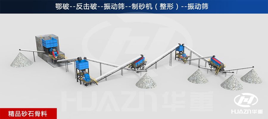 設(shè)備配置:ZSW系列振動給料機(jī)、JC系列顎式破碎機(jī)、PFQ系列反擊式破碎機(jī)、PLS系列立式?jīng)_擊制砂機(jī)、YKR圓振動篩、皮帶輸送機(jī)。