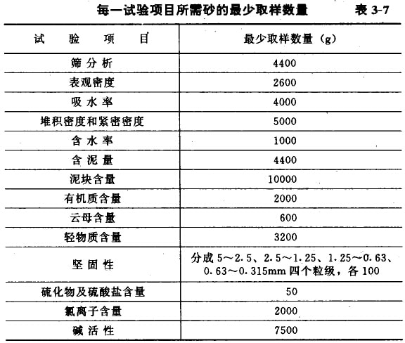 每一單項試驗的試樣應不少于表3—7所規(guī)定的最少取樣數(shù)量。需作幾項試驗時,如確能保證試樣經(jīng)一項試驗后不致影響另一項試驗的結果,可用同一試樣進行幾項不同的試驗。
