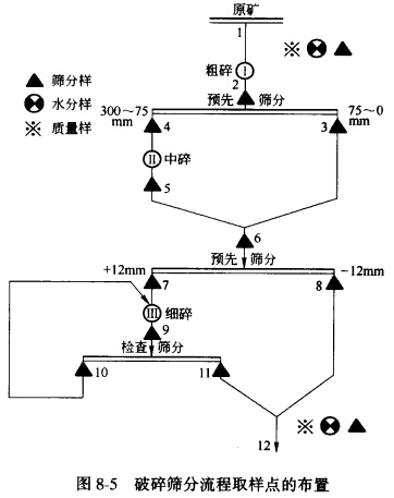 (4)分析各段碎礦產(chǎn)品的粒度組成,結合各段碎礦礬排礦口測定結果,分析縮小最終產(chǎn)品粒 度的可能性和方法。