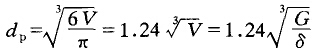 (2)等值直徑表示法。村粒度細(xì)小的礦塊可以用等值直徑dp來(lái)表示它的大。核^等值直徑就是與礦塊等體積的球體直徑。設(shè)礦塊的體積為v,其質(zhì)量為G,密度為δ,而球的體積為πd³/6,在等體積的條件下,其等值直徑為