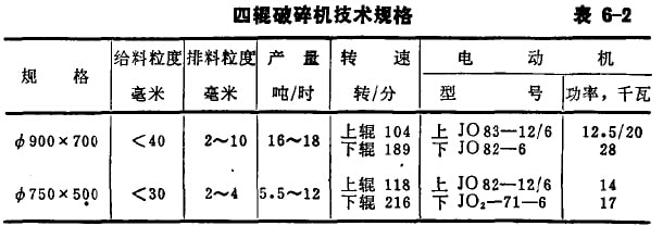 四輥破碎機技術(shù)規(guī)格見表6-2。