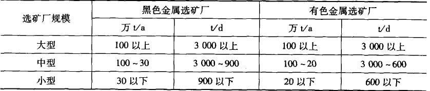 選礦廠的規(guī)模一般是按其年處理原礦量的能力來(lái)劃分的,如下表供參考。