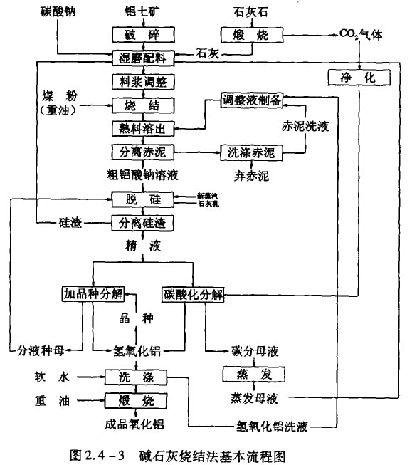 燒結法流程比較復雜,能耗大,產品質量一般不如拜草法,但燒結法能有效地處理高硅鋁土礦(如鋁硅比3-5),而且所消耗的是價格較低的碳酸鈉。