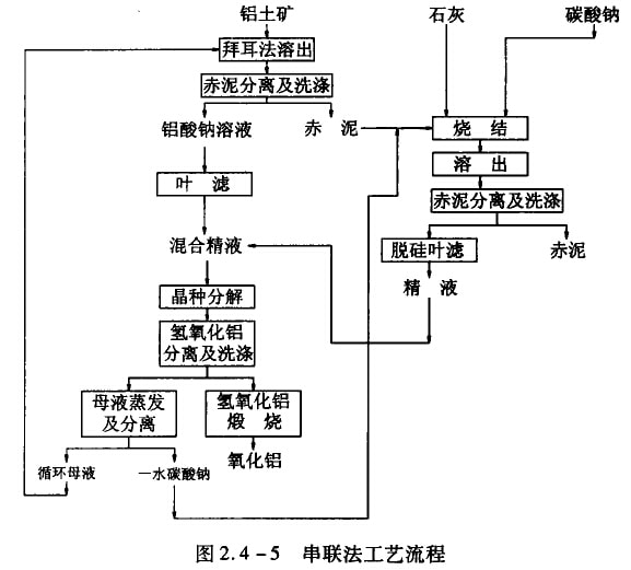 除上述串聯法和并聯法之外,還有所謂的混聯法,它是將拜耳法和同時處理拜哥法赤泥與低品位鋁土礦的燒結法結合在一起的聯合法。混聯法是處理高硅低鋁原料的有效方法。