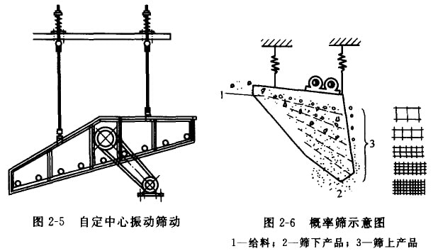 (4)概率篩。概率篩是一種多層新型的篩分機械,它是利用顆粒通過篩孔的概率差異來完成篩分的。其結構原理如圖2-6所示。