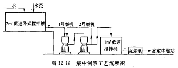 GSM-I型高效水泥濕磨機細磨水泥灌漿工藝,其流程圖如圖12-17所示。