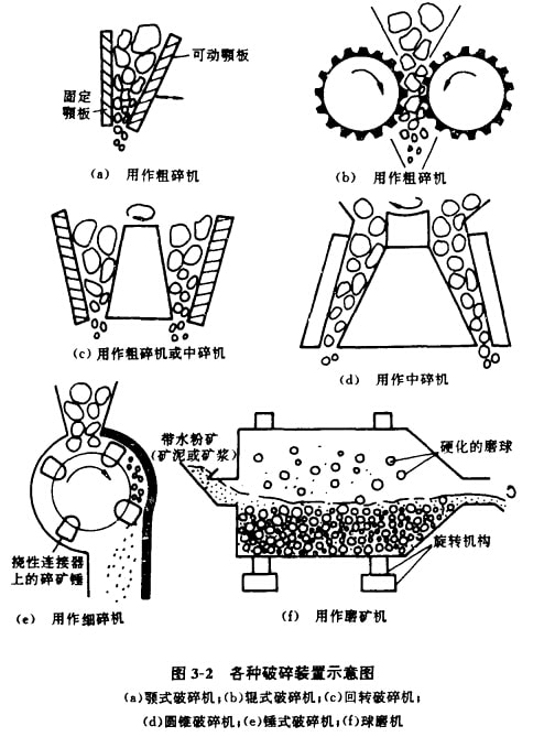 各種破碎機作業(yè)原理見圖3-2。