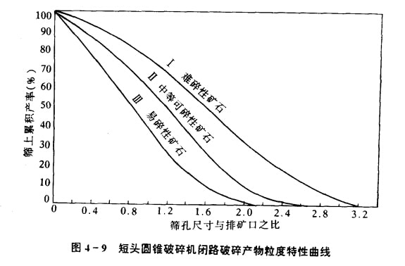 水分在破碎時的有害程度,視礦·石中礦泥含量而定。當礦石含泥多,水分高時,采用預先篩分可以減少破碎機的堵塞現象。生產實踐證明,大多數情況下,原礦中均含有一定數量的細粒物料,特別是易碎性礦石,其紉粒含量較多,如圖4—3所示。所以,粗碎前的預先篩分總是有利的。