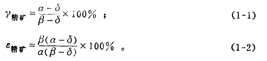通常用希臘字母α、β、δ三個字母分別表示原礦。、精礦、尾礦的品位。