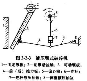 (3)液壓調(diào)整。近年來(lái)還有在此位置安裝液壓推動(dòng)缸來(lái)調(diào)整排礦口的,見(jiàn)圖3-2-3液壓頰式破碎機(jī)中的調(diào)整液壓油缸8。