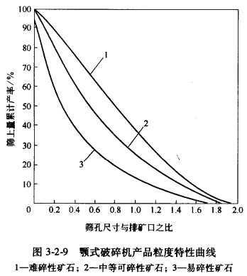 顎式破碎機(jī)的產(chǎn)品粒度特性曲線如圖3-2-9所示。
