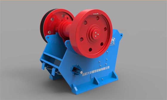 簡擺顎式破碎機的工作原理:電動機通過三角皮帶傳動帶動偏心軸回轉,由于偏心軸的偏心作用帶動連桿上下往復擺動,同時推動推力板往復擺動,因而推動動顎繞心軸前后往復擺動,使動顎周期性的時而靠近固定顎,時而離開。當動顎靠近固定顎時,處在顎膛中的物料即受到擠壓、彎曲和劈裂作用而破碎。當動顎離開固定顎時進行卸料。由于工作時動顎只是繞心釉作圓弧柱復擺動,其運動軌跡較簡單,故稱簡單擺動顎式破碎機。