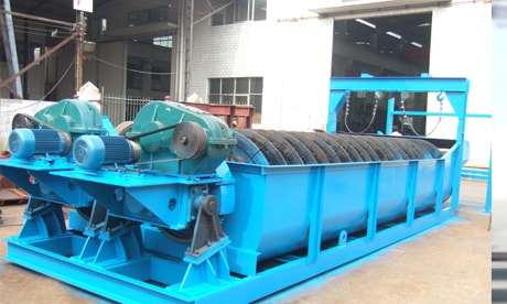 FC/FG系列螺旋分級機主要用于選礦、砂石骨料加工生產中磨礦回路中預先分級和檢查分級以及洗砂作業中的脫泥、脫水等作業。根據螺旋數量可分為單螺旋和雙螺旋兩種;根據螺旋葉片浸入溢流面深淺程度不同可分為高堰式和沉沒式兩種,前者用于溢流粒度為0.83~0.15mm的礦石和洗砂分級,后者用于0.15~0.07mm的礦石和細粉的分級,該系列設備性能可靠,運行穩定,洗砂分級效果好,在砂石骨料系統中用于洗砂可控制石粉流失量。